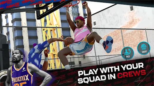 在NBA 2K Mobile中,比赛期间没有替补,唯一可用的球员是首发阵容的一部分。比赛由两个半场组成,每半场持续两分钟。你可以选择自动或手动控制球员。在自动模式下,玩家可以选择何时投篮或防守,但无法自由移动。而在手动模式下,玩家需要全面控制球员的移动、投篮、传球和防守。与许多其他篮球游戏不同,球员拥有无限的耐力,可以随时奔跑和防守。游戏还遵循NBA的规则,如24秒投篮时钟和界外球规则。