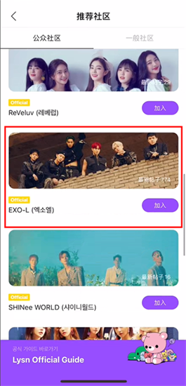 3、浏览并找到自己喜欢的艺人组合,点击“加入”并填写账号信息;