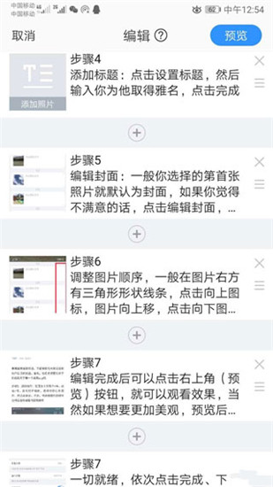 1、选择照片:点击首页下方“+”号,从相册中按顺序选取照片并确认。