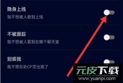 4、进入隐私设置后,将“隐身上线”旁的开关按钮向右滑动,使其变为开启状态。