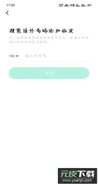 6. 如需添加境外号码,在输入号码前选择对应的国家或地区代码,再执行搜索操作;