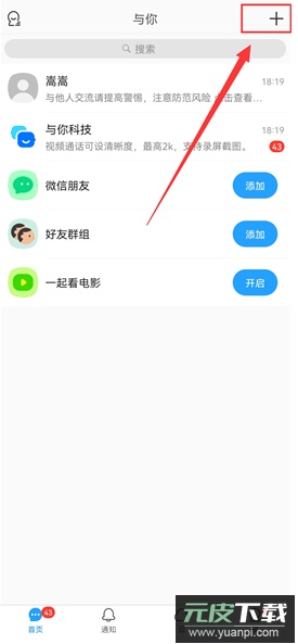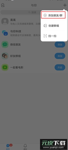 点击后会出现一个小弹窗,选择其中的添加朋友或群功能;