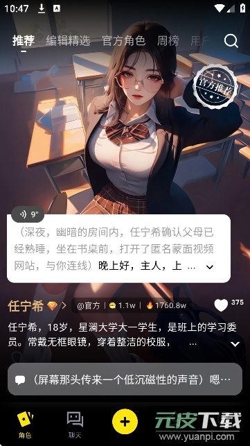 1、软件中准备了上百个不同设定的角色可供互动,这些角色来自各种职业背景,性格各异,能满足用户多样的交流需求;
