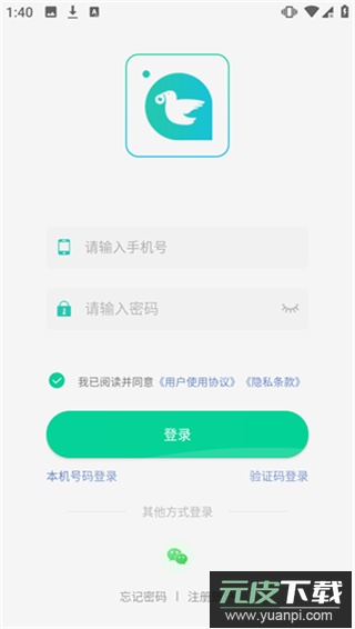 1、启动软件后进入登录界面,已有账号的用户可直接输入手机号和密码登录;