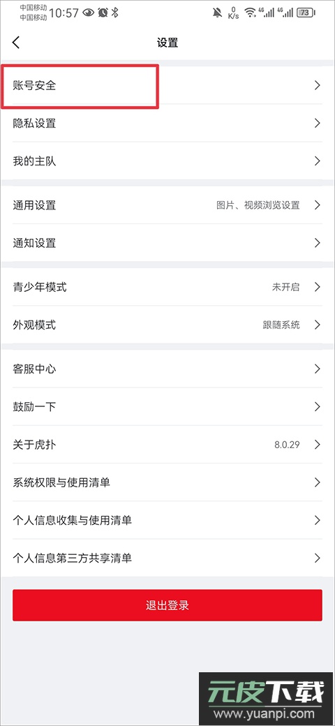 2、在设置菜单中选择“账号安全”选项。
