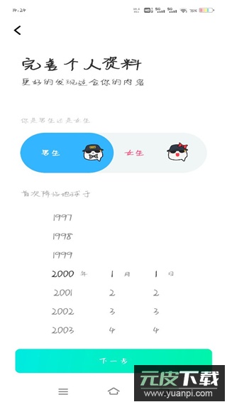 2、填写基本资料,包括性别与出生日期,完成后进入下一步;