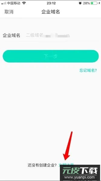 首次打开软件需输入企业专属二级域名进行绑定登录。若尚未创建企业,可点击页面下方的“立即注册”开始创建。