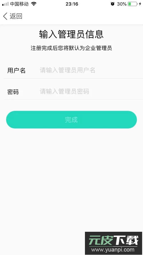 完成企业信息填写后,进入管理员账号设置界面。在此输入自定义的用户名及密码即可。