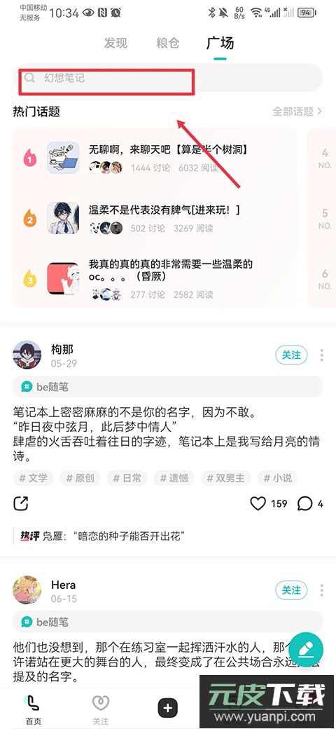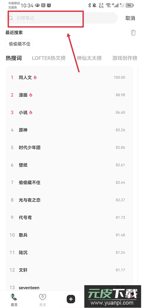 1、打开LOFTER最新版,点击页面上方的搜索框;
