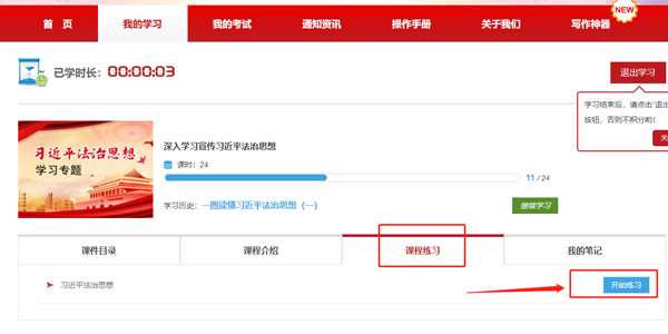 2、学习主页显示功能导航、个人信息、课程学习板块、法治资讯、新法速递、法治百科、典型案例以及个人积分排名等信息。