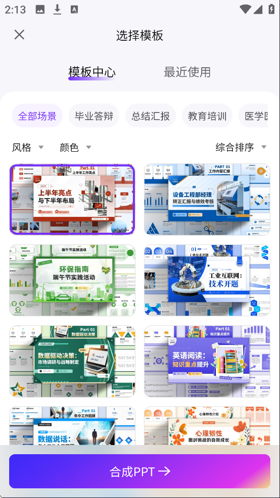 4、选好合适的模板后,点击合成PPT按钮即可;