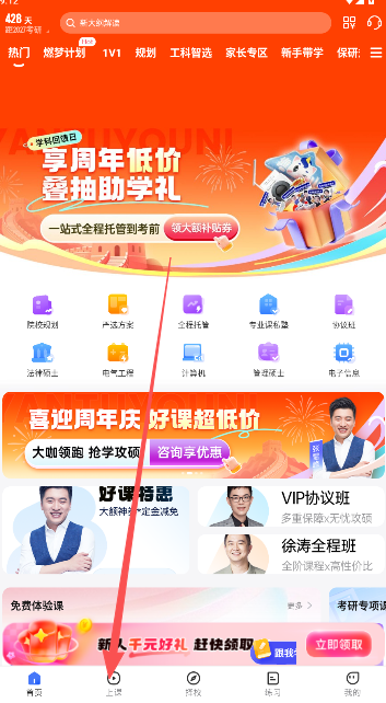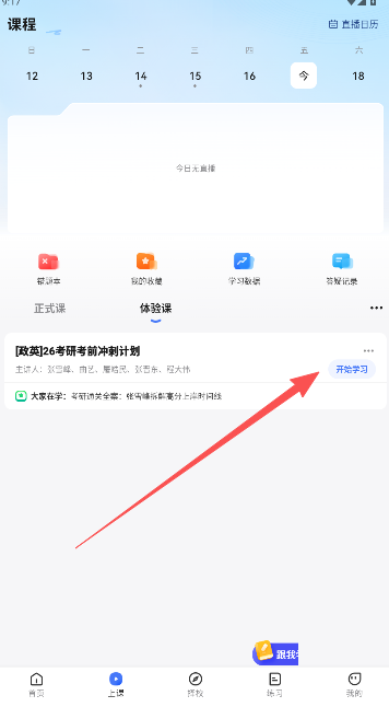 1、研途考研app内设有专门的课程学习版块,用户可直接点击进入查看。