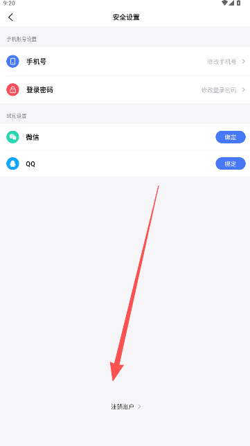2、在安全设置页面底部,找到并点击注销账户选项。