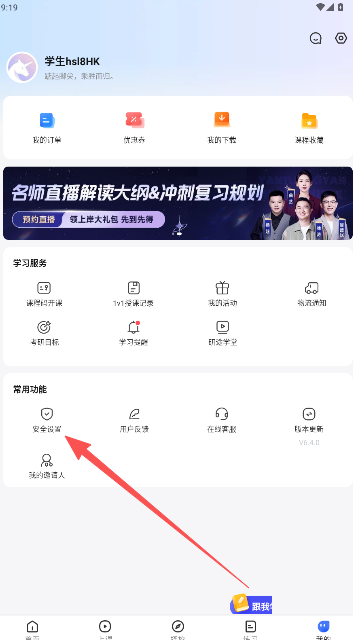 1、在应用内找到常用功能栏,点击进入安全设置。