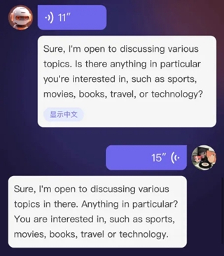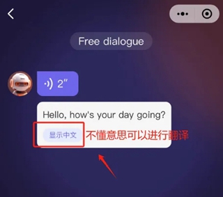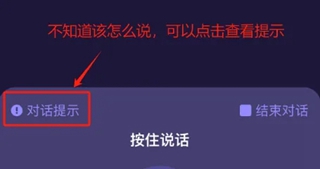 3. 点击“对话提示”可查看参考回答;若不确定发音,点击播放图标即可听取语音示范。点击“对话提示”可查看参考回答;若不确定发音,点击播放图标即可听取语音示范。