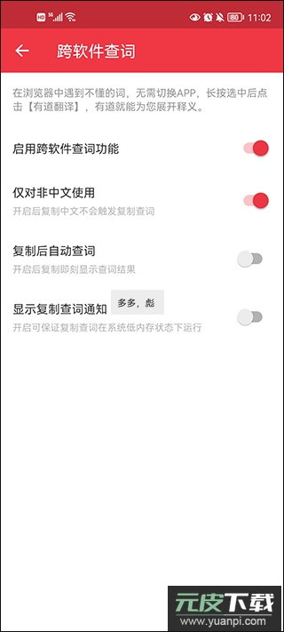 4、开启快捷功能,即可在其他应用内实现实时翻译。
