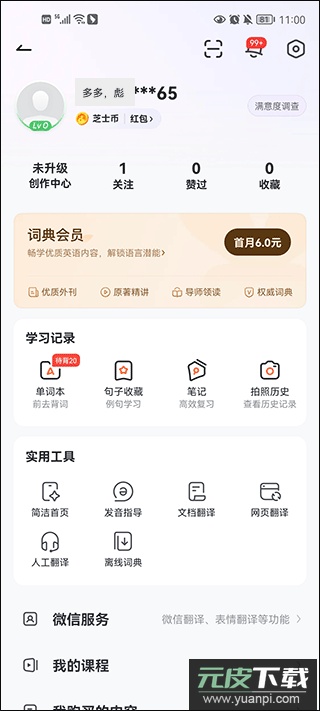 1、启动网易有道词典app,点击左上角“我的”入口;