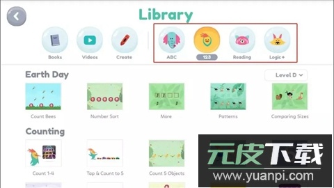 也可按学科类别筛选,包括字母、数字、阅读与逻辑等。家长可根据孩子需要选择相应类别进行强化。