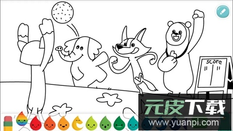 也提供单色图案供孩子填色,探索色彩搭配。工具包含不同粗细的笔刷与贴纸,喜欢画画的孩子可尽情创作。