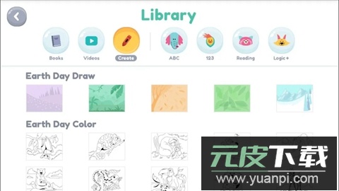 分类栏中的绘画板块包含绘图与填色两部分,侧重培养孩子的色彩感知与创造能力。孩子可选择喜欢的画布自由涂鸦,发挥想象力。