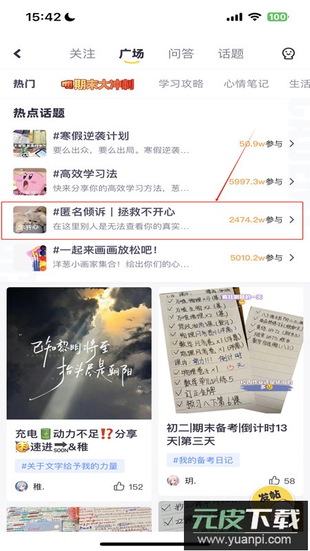 2、在社交页面找到自己想要参与的话题,点击进入详情页