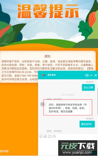 2、未注册的用户需联系客服,提供孩子所在的学校、年级、班级、姓名及电话号码,由客服统一完成注册;