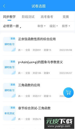2. 点击界面左上角,可按年级与学科筛选,快速定位所需试卷。
