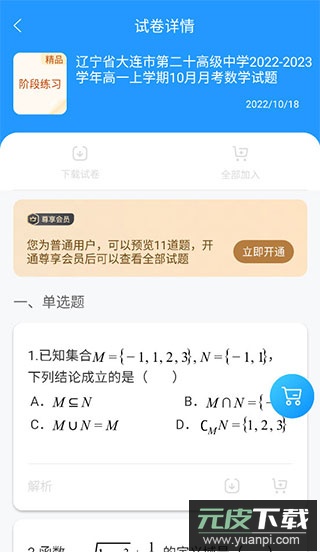 4. 进入试卷详情页,可预览其中包含的单选题、多选题等各类题型。