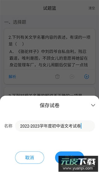 10. 最后下载试卷,并可选择是否包含答案、解析及试题来源等信息。