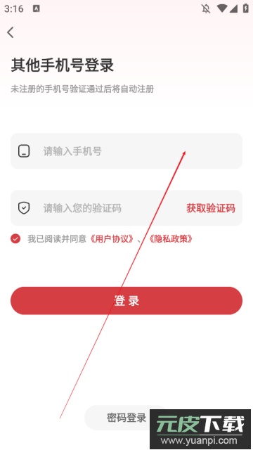 3、在登录页面输入个人手机号码及收到的短信验证码,完成登录操作。