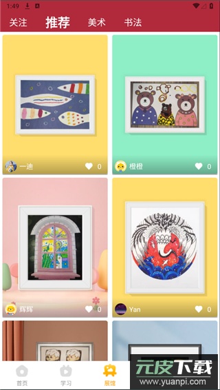 3、在展馆页面浏览其他用户创作的美术与书法作品;