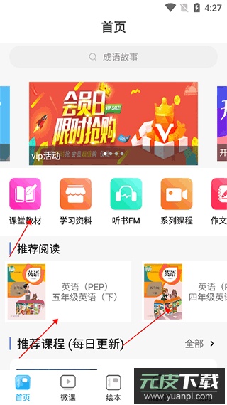 1、首先打开应用进入首页,可以看到推荐阅读和课堂教程两个类目,直接选择自己需要学习的内容即可;