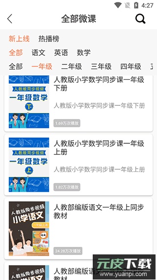 4、如果选择全部微课选项,就可以自由学习小学阶段所有科目课程的微课资源;