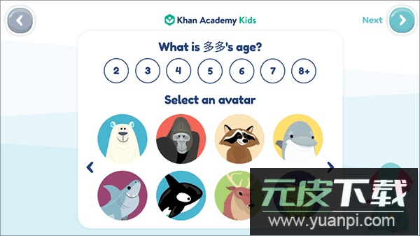 接着选择孩子的年龄范围与喜爱头像,然后按下“Next”;