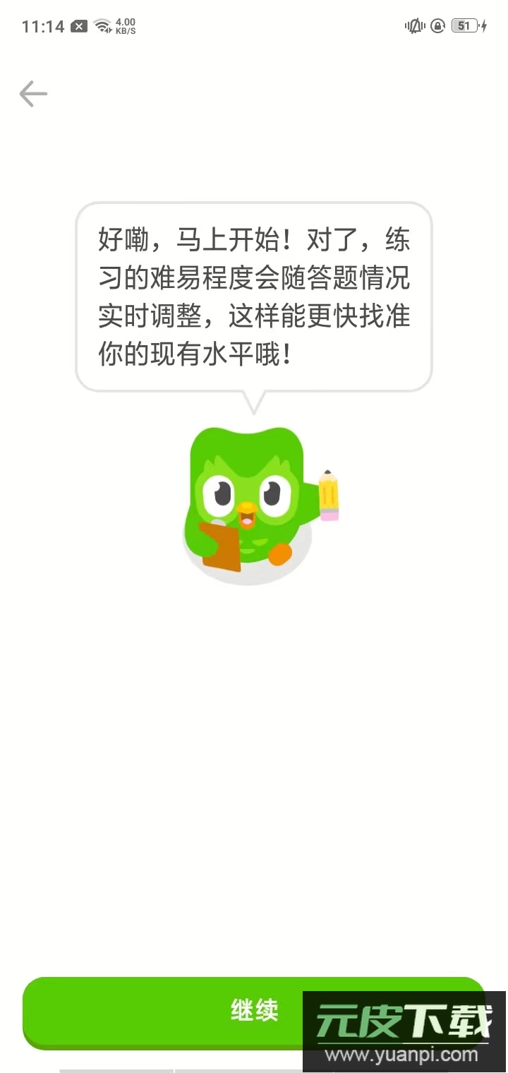 2、确定语言后,系统会引导回答几个问题,随后进入练习阶段,题目难度会根据答题表现动态调整;