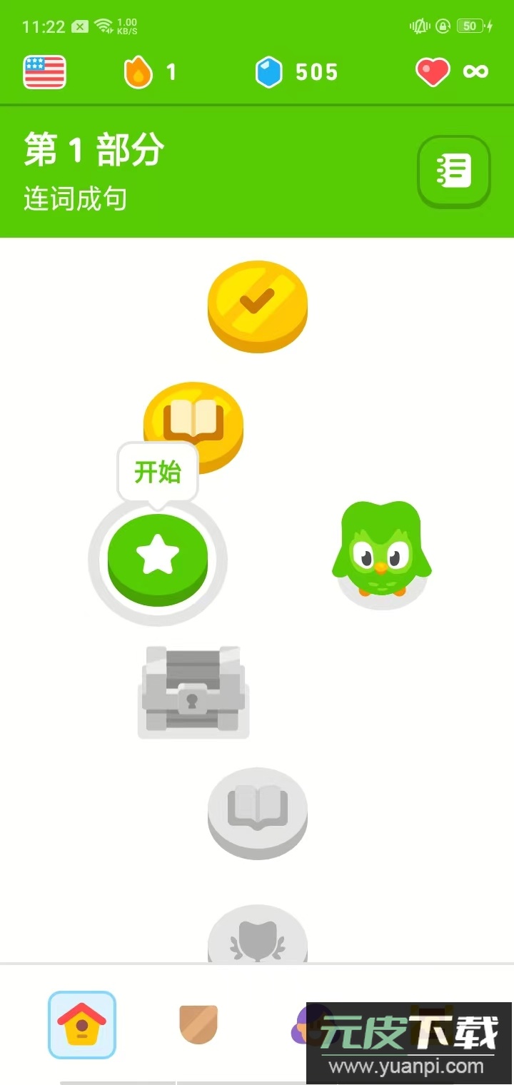 适合零起点用户,按单元分解旅行、就餐、日常对话、职场面试等生活场景,突破枯燥记忆模式,采用游戏闯关机制,结合宝石、爱心、皇冠等元素与卡通形象,让学习变得生动有趣;
