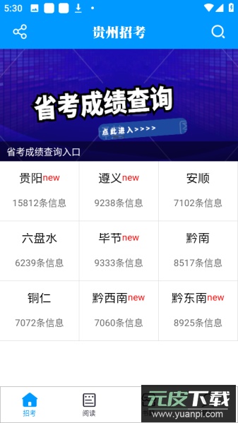 3. 在应用首页,可以浏览贵州省内各地详尽的招考信息,所有内容均会保持实时更新。