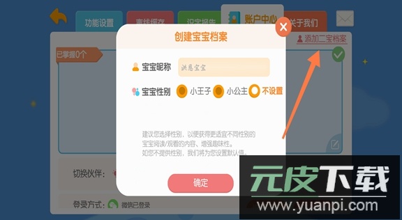 3、之后在界面右上角位置,找到并点击添加二宝档案选项,在弹出的界面里填写二宝的相关信息就完成设置了。