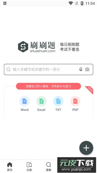 可搜索其他用户上传的题库,支持文本、语音及拍照多种搜索方式。