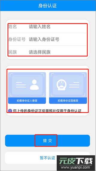 (1)身份认证:授权后进入认证环节,填写个人身份信息并上传身份证正反面照片;认证通过后进入人脸识别。