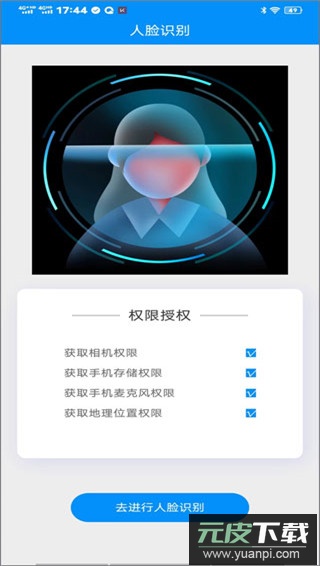(2)人脸识别:点击开启摄像头权限,按照屏幕提示完成动作检测;识别成功后进入图像采集步骤。