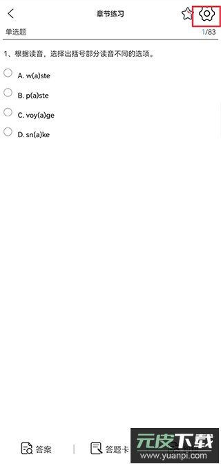 进入答题界面后,点击右上角的设置图标。