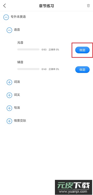 在需要答题的章节点击做题按钮。