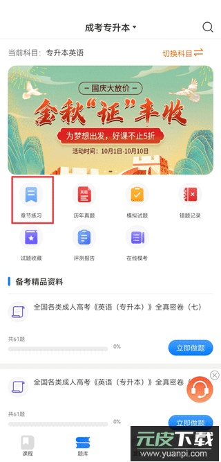 进入题库页面,选择章节练习。
