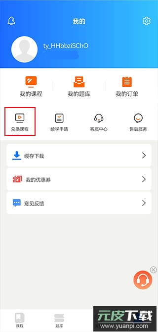 在我的页面中找到兑换课程选项并点击。