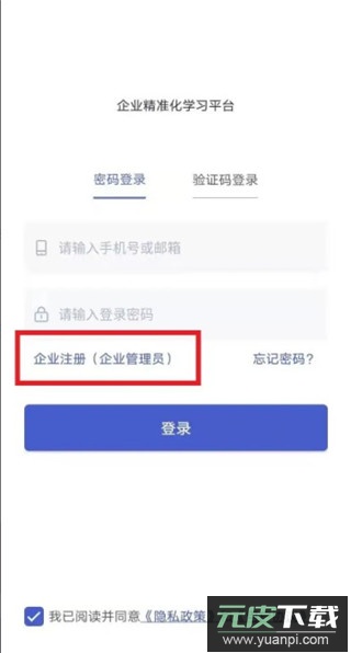 1、在本站下载安装并打开app,进入登录页面,点击选择企业注册。