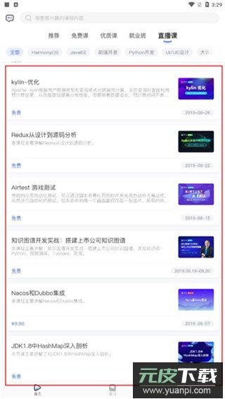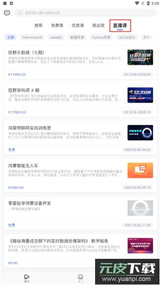 1.打开博学谷应用,进入“直播课”栏目;