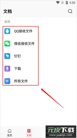 2、进入应用主界面,选择文档选项;