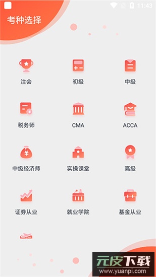 1、安装并启动应用后,首先选择您需要学习的课程类别;