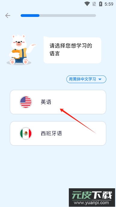 2、在语言选项中选择你想要学习的目标语种,例如英语或西班牙语